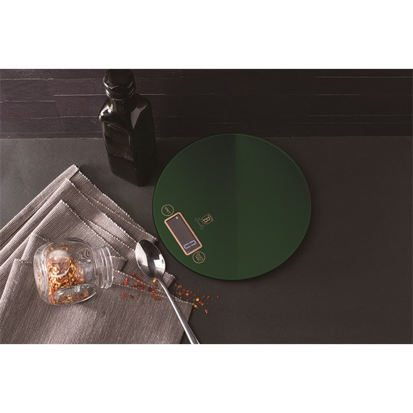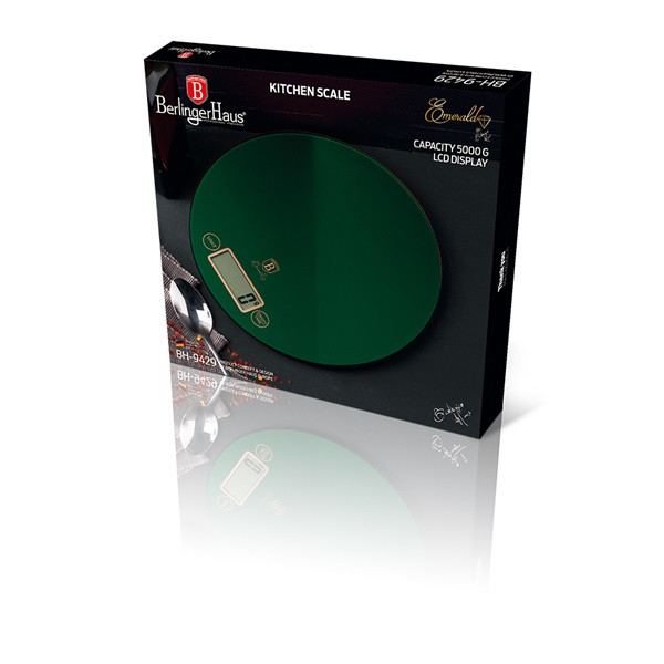 A mérleg edzett üvegből és ütésálló műanyagból készült, ami nemcsak tartósságot, hanem elegáns megjelenést is biztosít. A smaragdzöld szín különleges hangulatot kölcsönöz a konyhádnak.