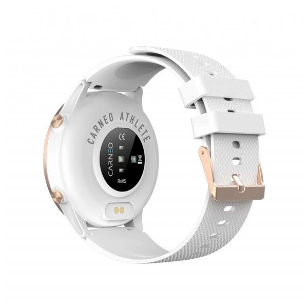 A Carneo ATHLETE GPS modern, kültéri fitnesz okosóra, arany rozsdamentes acél lünettával, kerek IPS színes kijelzővel rendelkezik, amelyet rendkívül kemény Gorilla Glass üveggel védett. Mérik a pulzusszámot, a vér oxigénellátását, a stresszt, a BMI-t, a megtett távolságot, figyelik az elégetett kalóriákat, az alvás minőségét, vagy a beépített GPS-nek köszönhetően közvetlenül a térképen rögzíti az útvonalat. 290mAh-s akkumulátora, akár 5 napos üzemidőt biztosít. IP68 tanúsítvánnyal rendelkezik, így víz- és porálló. Kompatibilis az iOS és az Android rendszerrel. Az óra kellemes szilikon szíjjal rendelkezik, amely más színű, bőr vagy fém szíjra cserélhető, és így az óra sportos megjelenése menedzseri megjelenésre cserélhető. Az ízléses outdoor-luxe kialakítás könnyen kombinálható elegáns vagy alkalmi ruhákkal. Az óra és az alkalmazás is teljesen magyar nyelvű, így biztosan jól kijöttök majd.