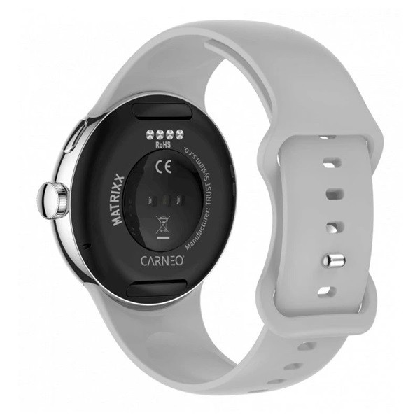 A modern Carneo Matrixx HR+ fitnesz okosóra elegáns fekete kivitelben kerek Super HD AMOLED színes kijelzővel rendelkezik. Képes a pulzusszám, a stressz, a BMI, a megtett távolság mérésére, nyomon követi az elégetett kalóriákat és az alvás minőségét. 260mAh-s akkumulátora 3-5 napos üzemidőt biztosít. Kompatibilis az iOS és az Android rendszerrel. Az óra kellemes tapintású, szilikon szíjjal rendelkezik, amely más színű szíjra cserélhető, és így a megjelenés az öltözékhez igazítható. Az ízléses, egyszerű és fényűző kialakítás könnyen kombinálható öltönyhöz vagy alkalmi öltözékhez. Az óra és az alkalmazás is teljesen magyar nyelvű, így biztosan kijöttök majd.