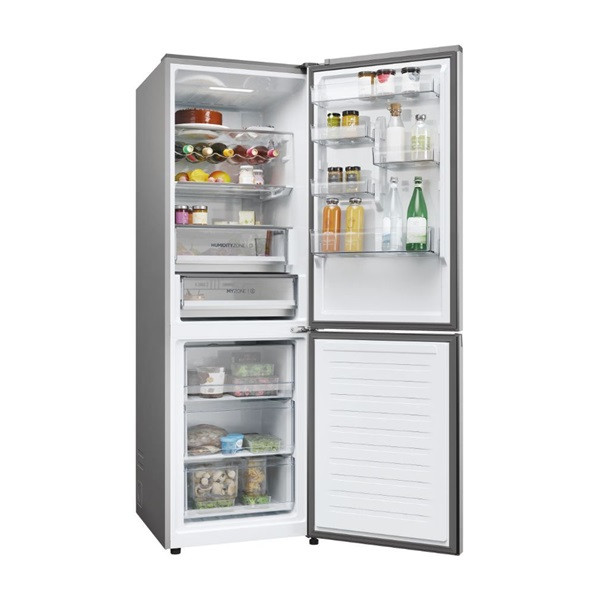 A 60 cm széles, felül hűtőszekrénnyel, alul pedig fagyasztóval rendelkező Haier Two Doors 60 termékcsalád az előkelő dizájn és az élvonalbeli funkciók révén a hibátlan teljesítmény tökéletes kombinációja. A Haier 2D Series 5 PRO hűtőszekrényei garantálják az élelmiszerek frissességének megőrzését a speciális zónáknak, a fejlett technológiának és egyéb megoldásoknak köszönhetően mind a hűtő-, mind a fagyasztórekeszben.
