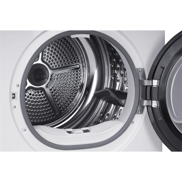 A szárítógép fejlett hőszivattyús szárítási technológiája alacsonyabb hőmérsékleten működik, így kíméletesen bánik a ruhákkal, miközben megőrzi azok minőségét. A 14 különböző szárítóprogram lehetővé teszi, hogy minden textíliához megtaláld a megfelelő beállítást, legyen szó vastag pamutról, műszálas anyagokról vagy kényesebb ruhadarabokról. A készülék B kondenzációs hatékonysági osztálya megbízható nedvességelvezetést biztosít, így a szárítás egyenletes és hatékony.