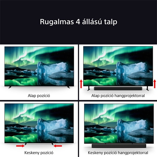 Vékony, elegáns kialakításával a televízió természetesen illeszkedik a szoba berendezéséhez. A gondosan megválasztott formák, anyagok és felületek biztosítják, hogy a készülék falon és állványon elhelyezve is kifinomult látványt nyújtson.