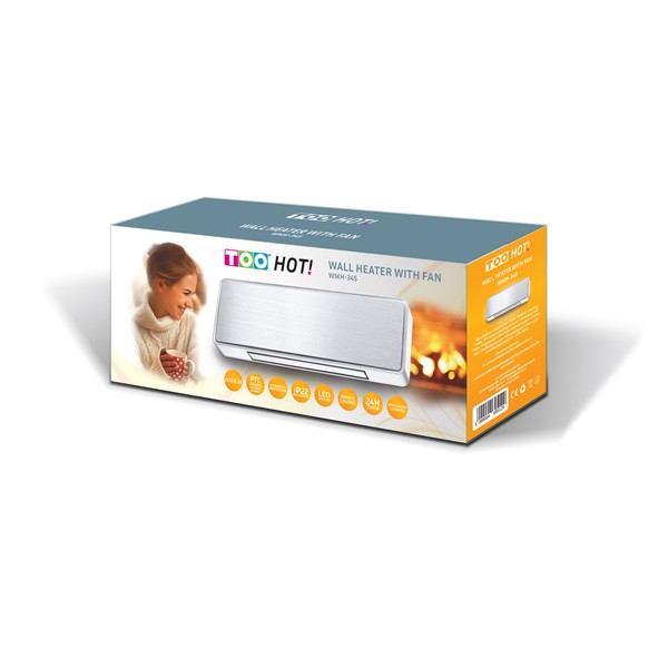 A TOO Hot! WMH-345 falra szerelhető ventilátoros fűtőtest praktikus megoldás otthona melege érdekében. Két fűtési fokozattal rendelkezik, a meleg illetve forró levegő áramlását az állítható lamellák irányítják. Távirányítójával egyszerűen beállíthatja a kívánt hőmérsékletet, amit aztán a beépített LED kijelzőn folyamatosan ellenőrizhet.