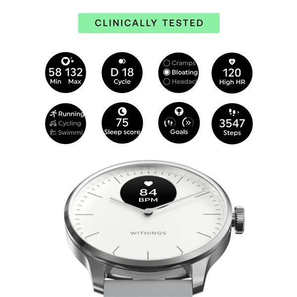 A ScanWatch Light tökéletes példája annak, hogy milyennek kell lennie egy egészségügyi hibrid okosórának: fejlett érzékelői alapvető és pontos egészségügyi adatokat szolgáltatnak egy prémium és könnyű órába ágyazva. És mivel az egészség javítása vagy fenntartása egy olyan utazás, amely az éjjel-nappali nyomon követés előnyeit élvezi, a ScanWatch Light 30 napos akkumulátor-élettartamot biztosít, mielőtt újratöltésre lenne szükség.